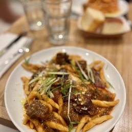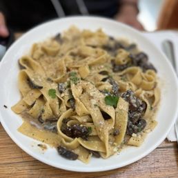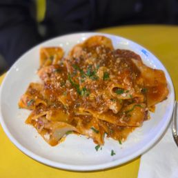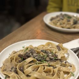 Stopped in for a quick bite and was so glad I did! We got the fettuccini funghi, mafaldine scampi, and it came with a free piece of focaccia for each dish. The pasta was cooked perfectly al dente and the flavors were amazing. The favorite was definitely the mafaldine scampi because the sauce had such a deep flavor and the focaccia soaked up the sauce really well. The focaccia itself was extremely moist and fluffy. The inside is fairly small with tables mainly for 2-4 people. The vibe is very casual which makes it perfect for a quick bite and it only took maybe 15 mins for our food to come out. Overall, I would definitely come back and plan to try the lasagna the next time I visit.